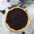 Cheesecake de ricotta sobre masa horneada, cubierto con mermelada de arándanos. Cremoso y fresco, ideal para una tarde de té o como postre ligero.