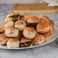 Exquisitos y frescos tapaditos elaborados con pan casero, ideales para celebraciones, reuniones o mesas de aperitivo. Cada bandeja incluye 20 unidades con sabores variados: