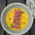 Delicioso tiradito de atún con nuestra salsa a base de ají amarillo. Ideal para acompañar un aperitivo.